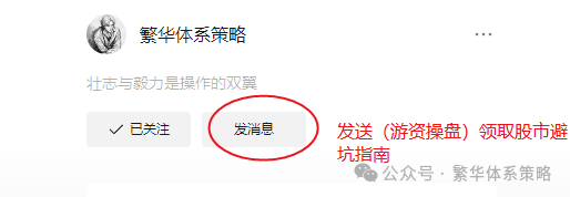 股海的波涛中,“股市有风险,要有风险意识,进出务必谨慎” 这句话如同一座永不熄灭的灯塔,时刻警示着每一位投资者。你是否总在为抓不住股市行情而懊恼?看着别人在股市中乘风破浪,自己却屡屡踩雷?想要在股海博弈中找到可靠的 “指南针”,一个专业的股票公众号就是你的不二之选!《繁华体系策略》由老孙主笔,帮助粉丝搭建稳健盈利系统!